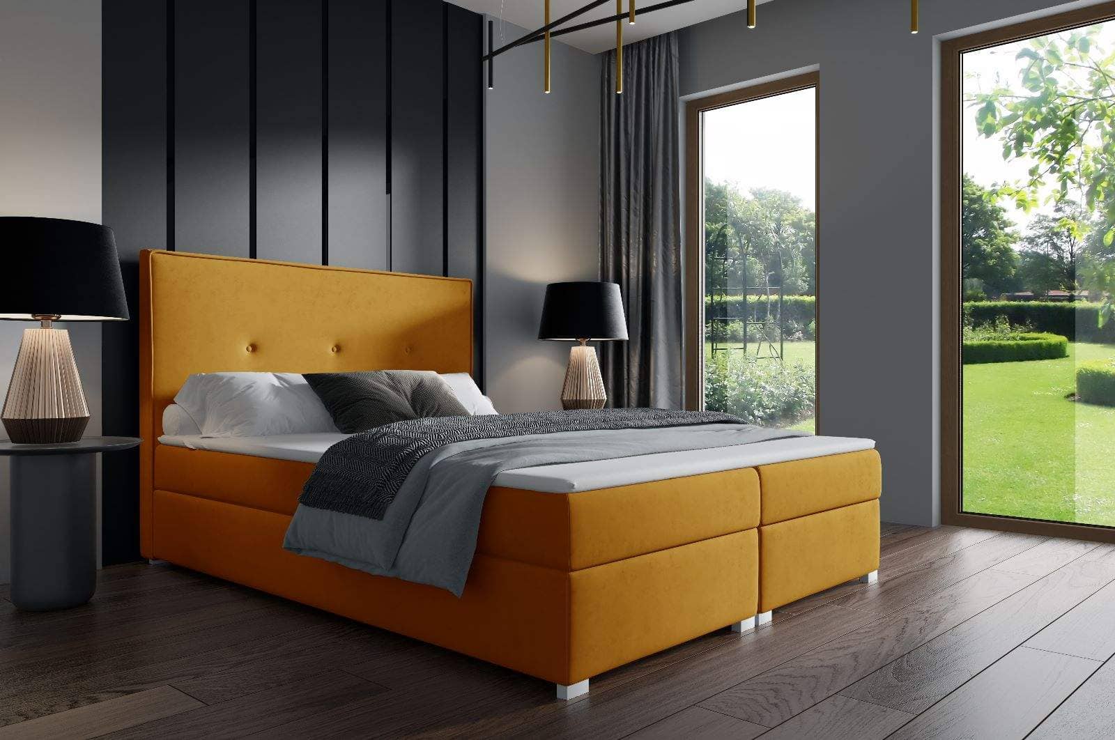 Łóżko tapicerowane kontynentalne 140x200 Larmo Żółte