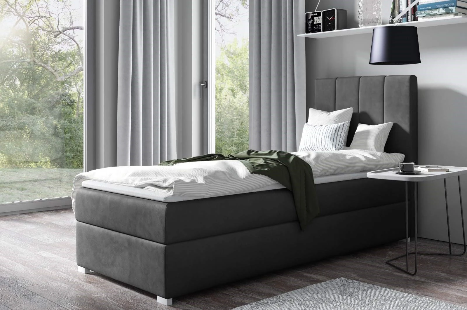 Łóżko tapicerowane kontynentalne 70x200 Jednoosobowe Brandi Prawe Szare