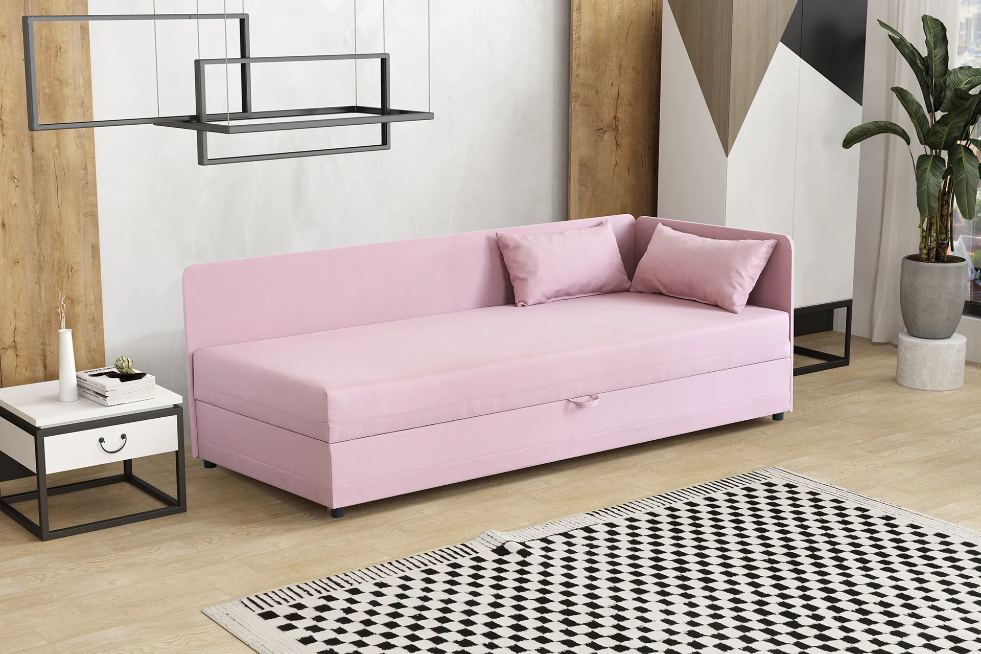 Tapczan łóżko jednoosobowe z pojemnikiem Hirek 90x200 Różowy