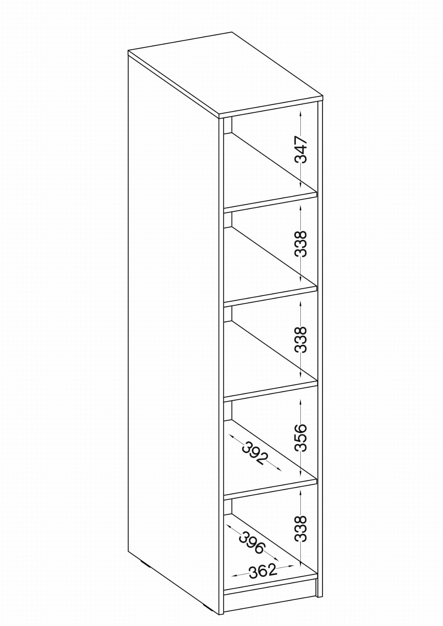 - Pięć półek otwartych o wymiarach 372x338x392 mm (szer. x wys. x gł.)