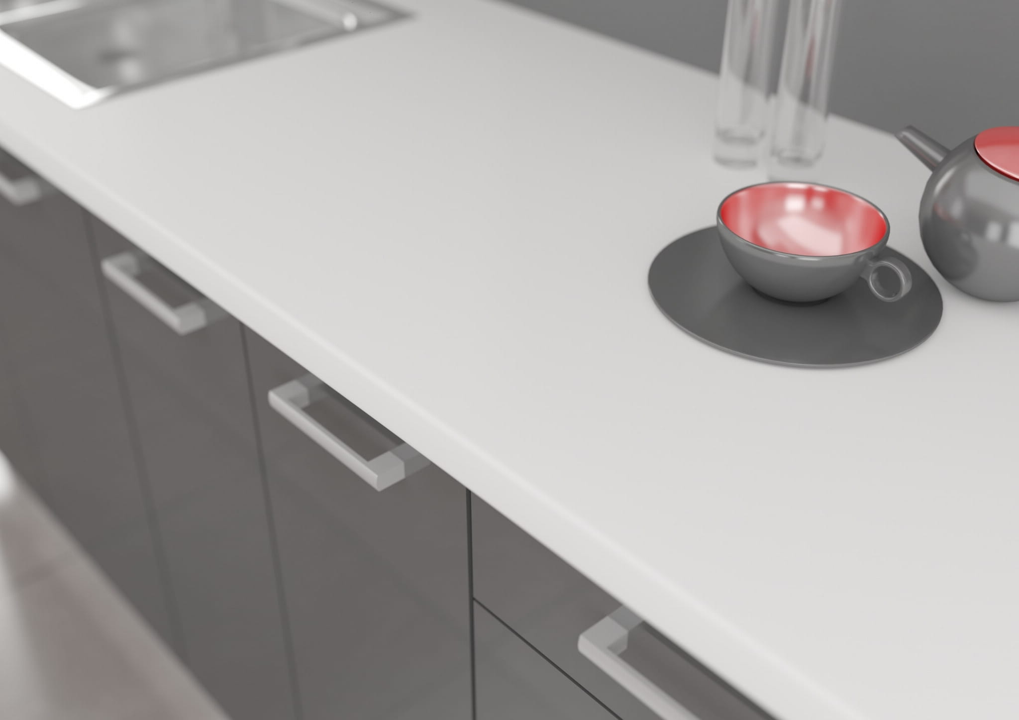 Blat wykonany z wytrzymałej płyty laminowanej, spód blatu pokryty jest papierem przeciwprężnym, który zapobiega odkształcaniu się blatu, jest to dodatkowe zabezpieczenie przed wilgocią. Miejsce styku laminatu z papierem przeciwprężnym jest uszczelnione i zabezpieczone klejem, obrzeże melaminowe zabezpiecza boki blatu przed uszkodzeniami i wilgocią.