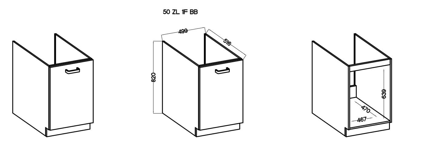 Dane techniczne Szafka kuchenna dolna pod zlew LUNA 50 ZL 1F Szary/Biały