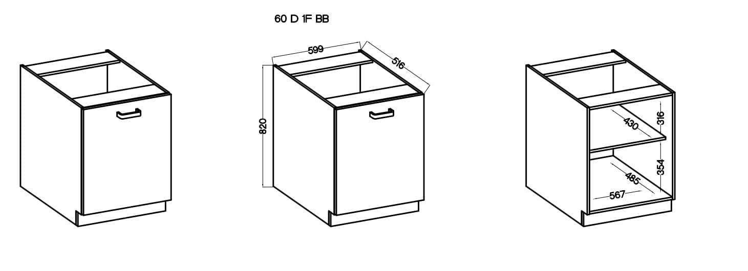 Dane techniczne Szafka kuchenna dolna STILO 60 D 1F Grafit/Biały
