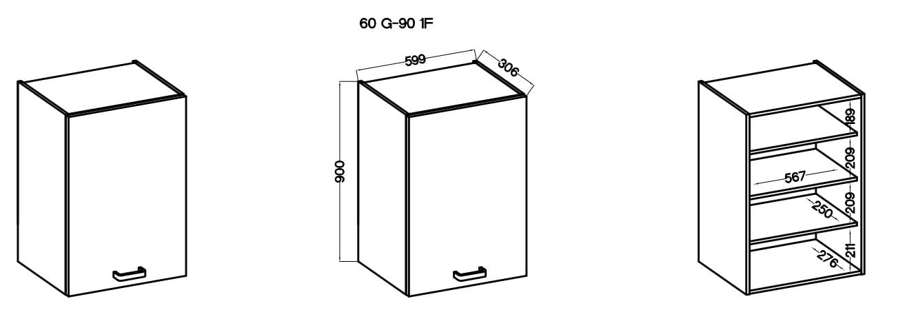 Dane techniczne Szafka kuchenna wisząca górna STILO 60 G-90 1F Biały/Biały