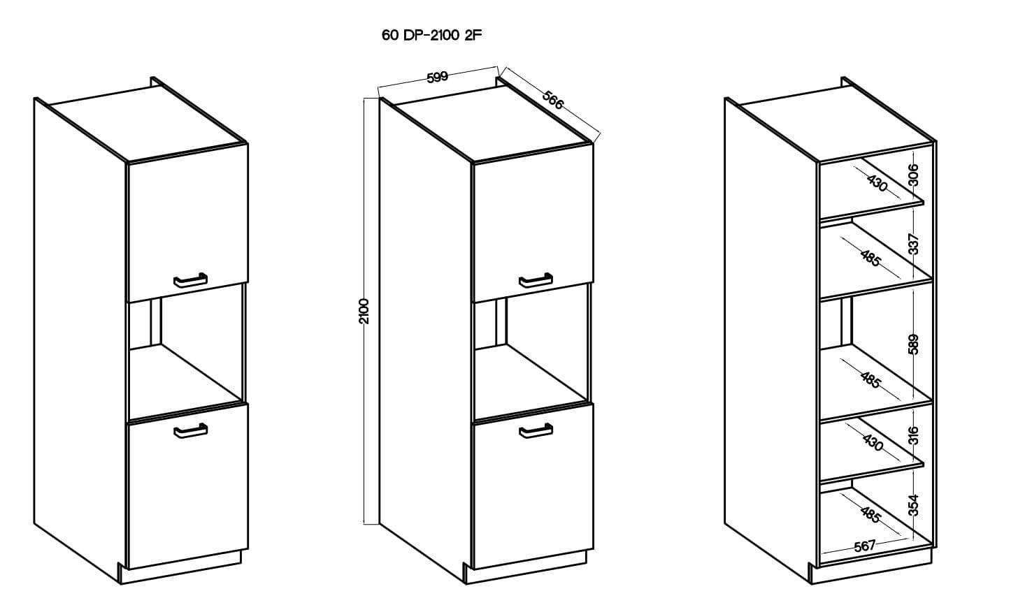 Dane techniczne Wysoka szafka kuchenna słupek na piekarnik LARA 60 DP-210 2F Grafit/Biały