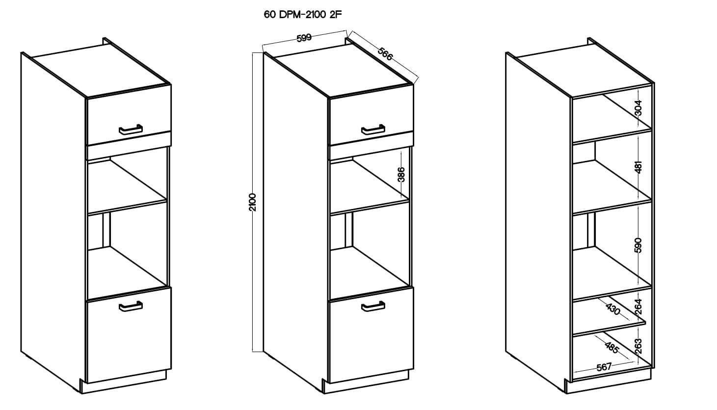 Dane techniczne Wysoka szafka słupek na piekarnik i mikrofale LUNA 60 DPM-210 2F Biały/Biały