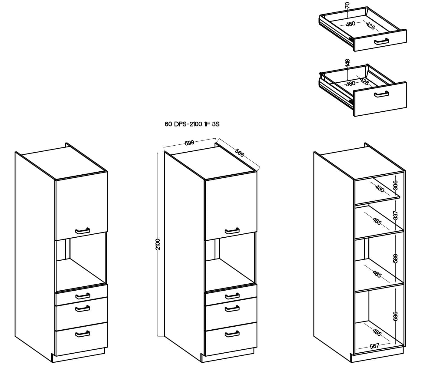 Dane techniczne Wysoka szafka słupek z szufladami na piekarnik STILO 60 DPS-210 3S 1F Biały/Dąb Artisan