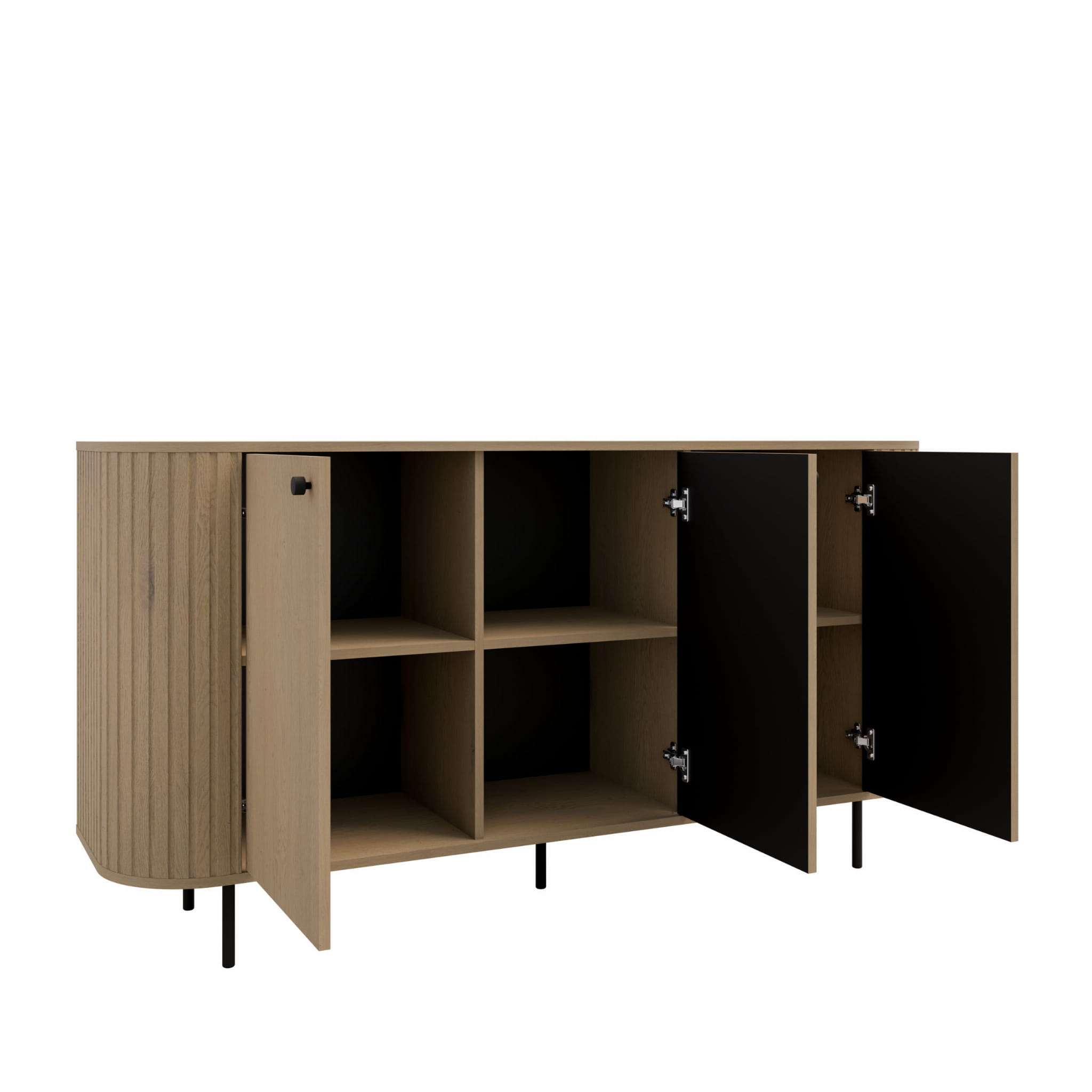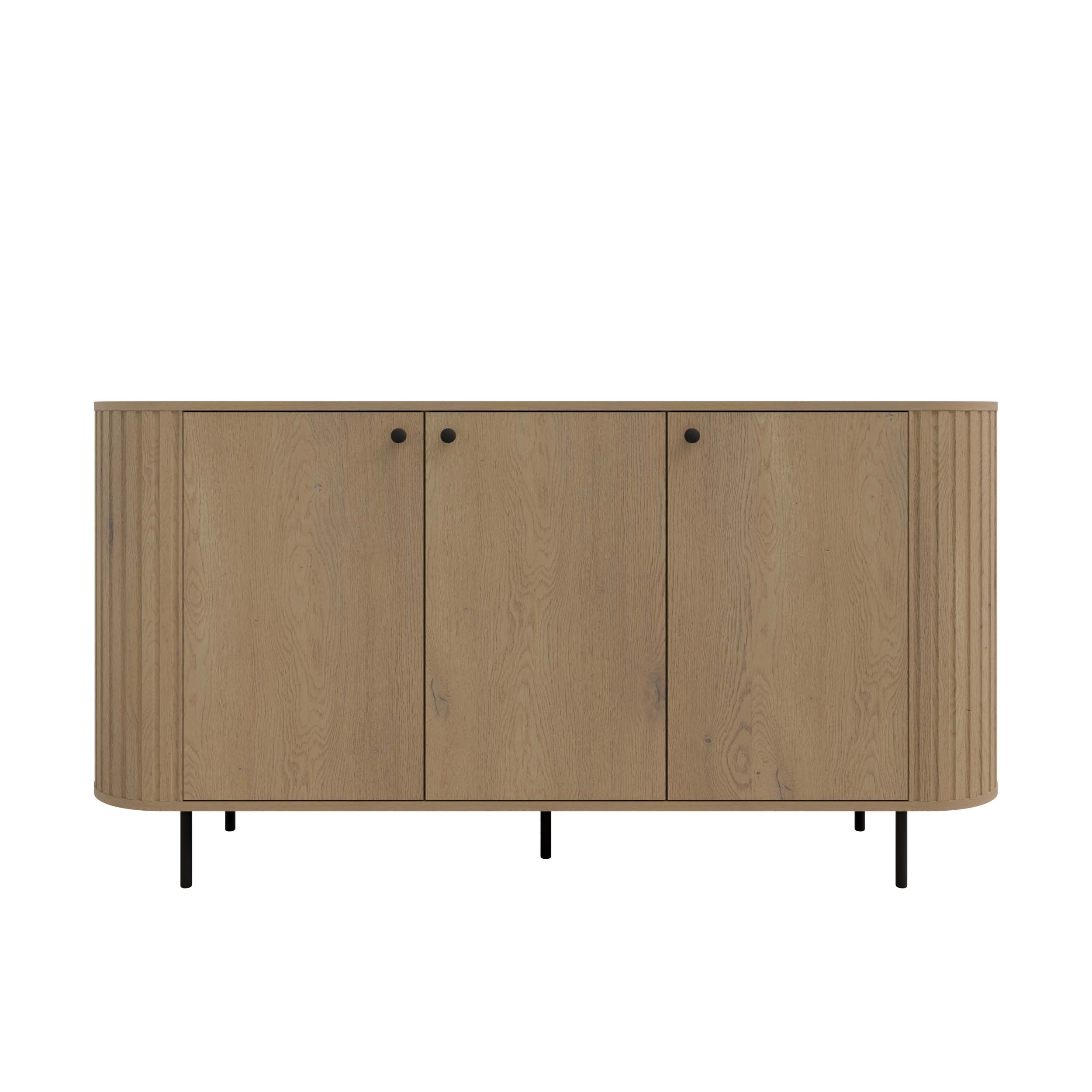 Komoda do salonu z trzema drzwiami i ryflowaniami Flana 830 3F Dąb Cremona