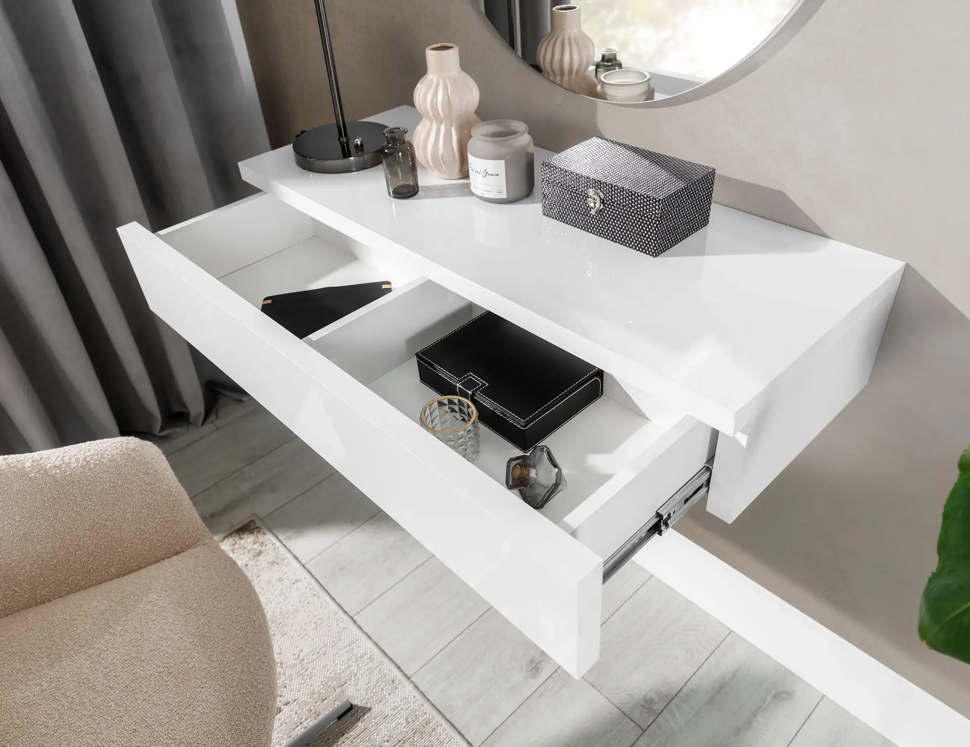 Toaletka wisząca do sypialni 100 cm Navene NV-02 Biały Połysk/Mat