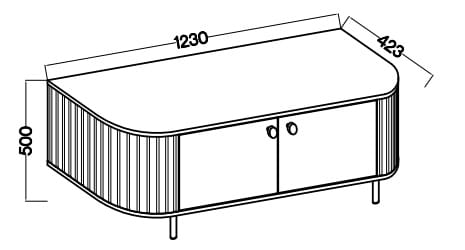 Dane techniczne Szafka RTV do salonu z dwoma drzwiami i ryflowaniami Flana 302 2F Dąb Cremona