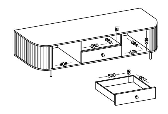 Dane techniczne Szafka RTV z dwoma drzwiami i szufladą do salonu Flana 321 2F1S Dąb Cremona