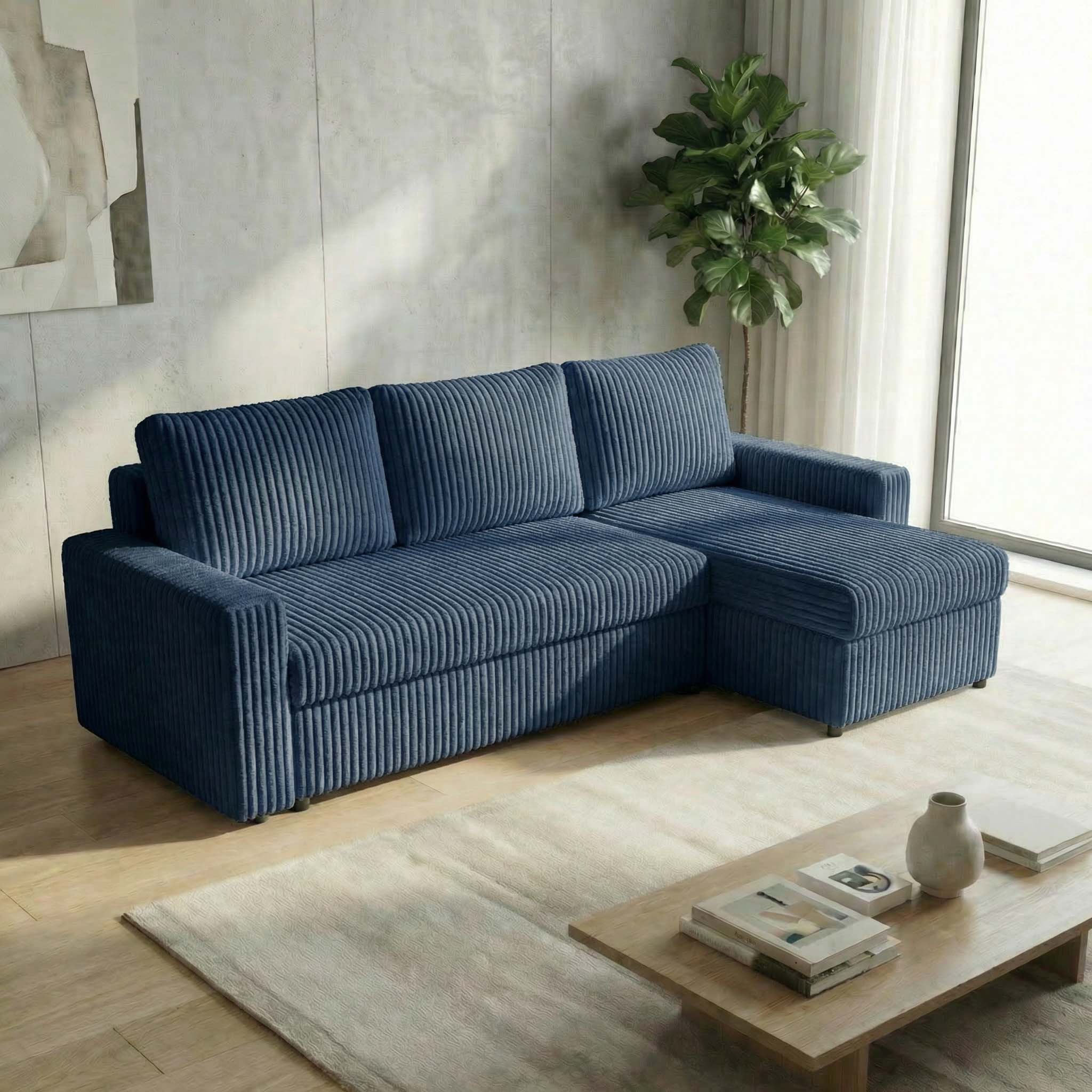 Narożnik z funkcją spania do salonu NIRVANA PLUS gruby sztruks niebieski