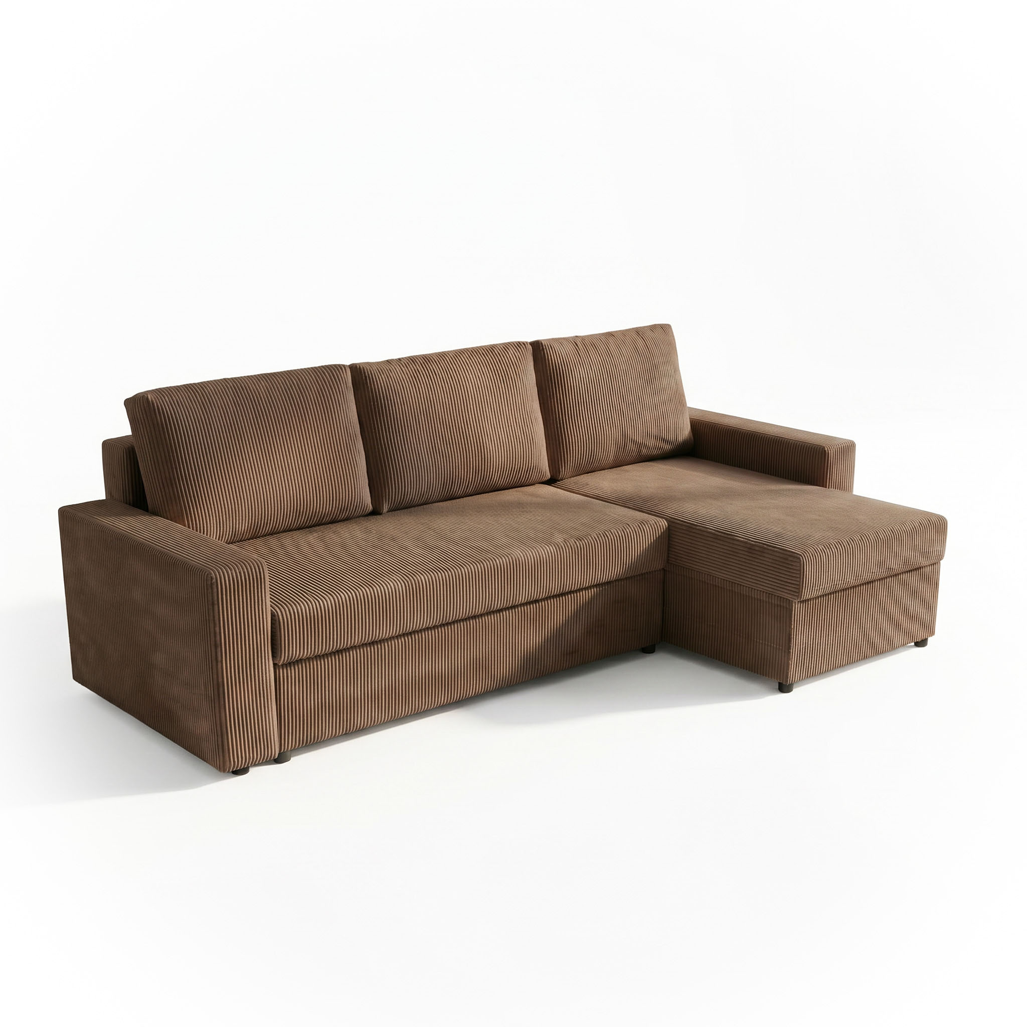 - ✅ Luksusowa tkanina sztruksowa – przyjemna w dotyku, trwała i ponadczasowo stylowa, podkreślająca elegancki charakter narożnika
