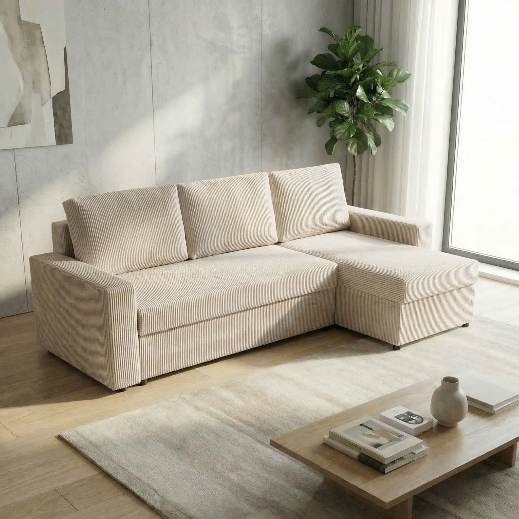 Narożnik z funkcją spania do salonu NIRVANA PLUS sztruks kremowy