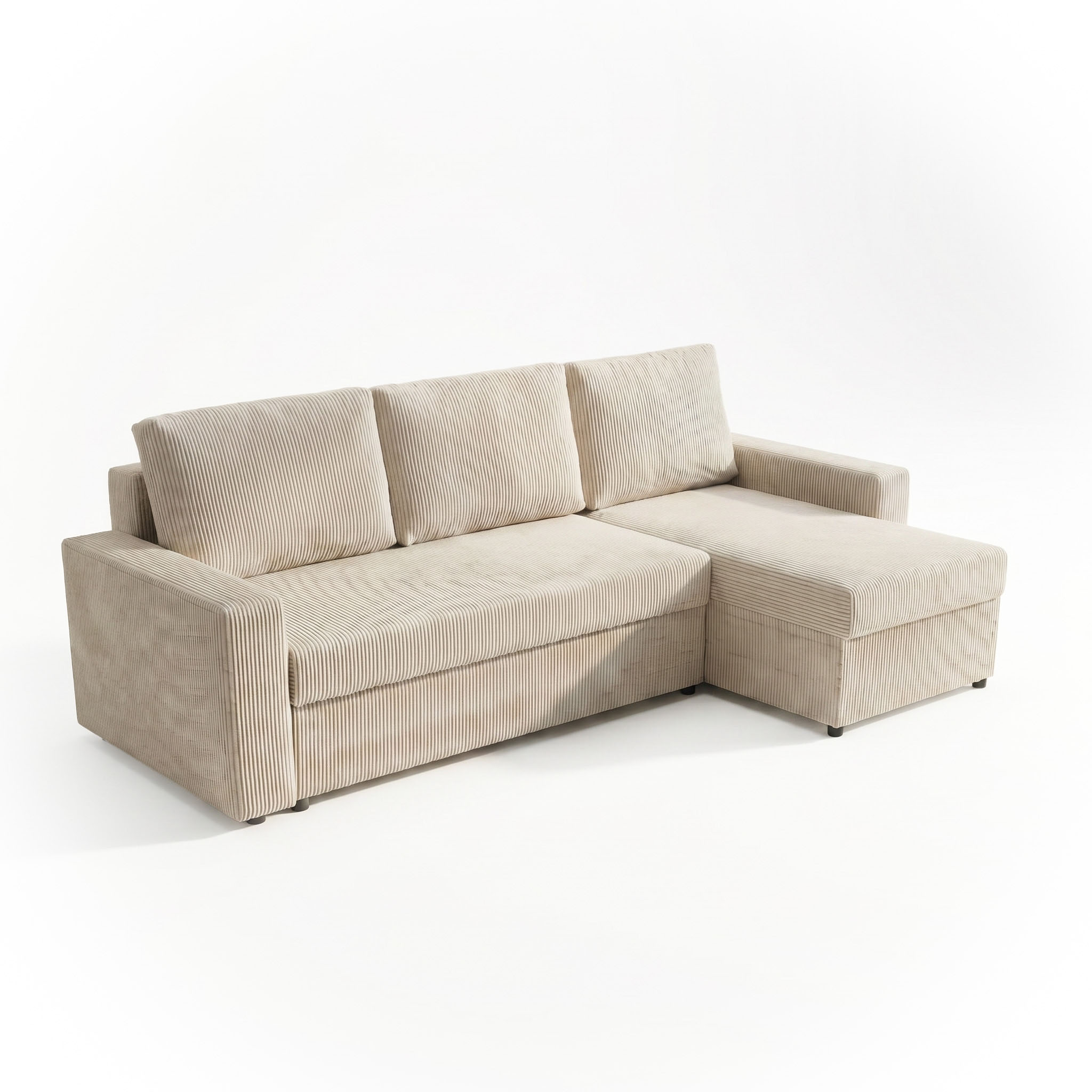 - ✅ Luksusowa tkanina sztruksowa – przyjemna w dotyku, trwała i ponadczasowo stylowa, podkreślająca elegancki charakter narożnika