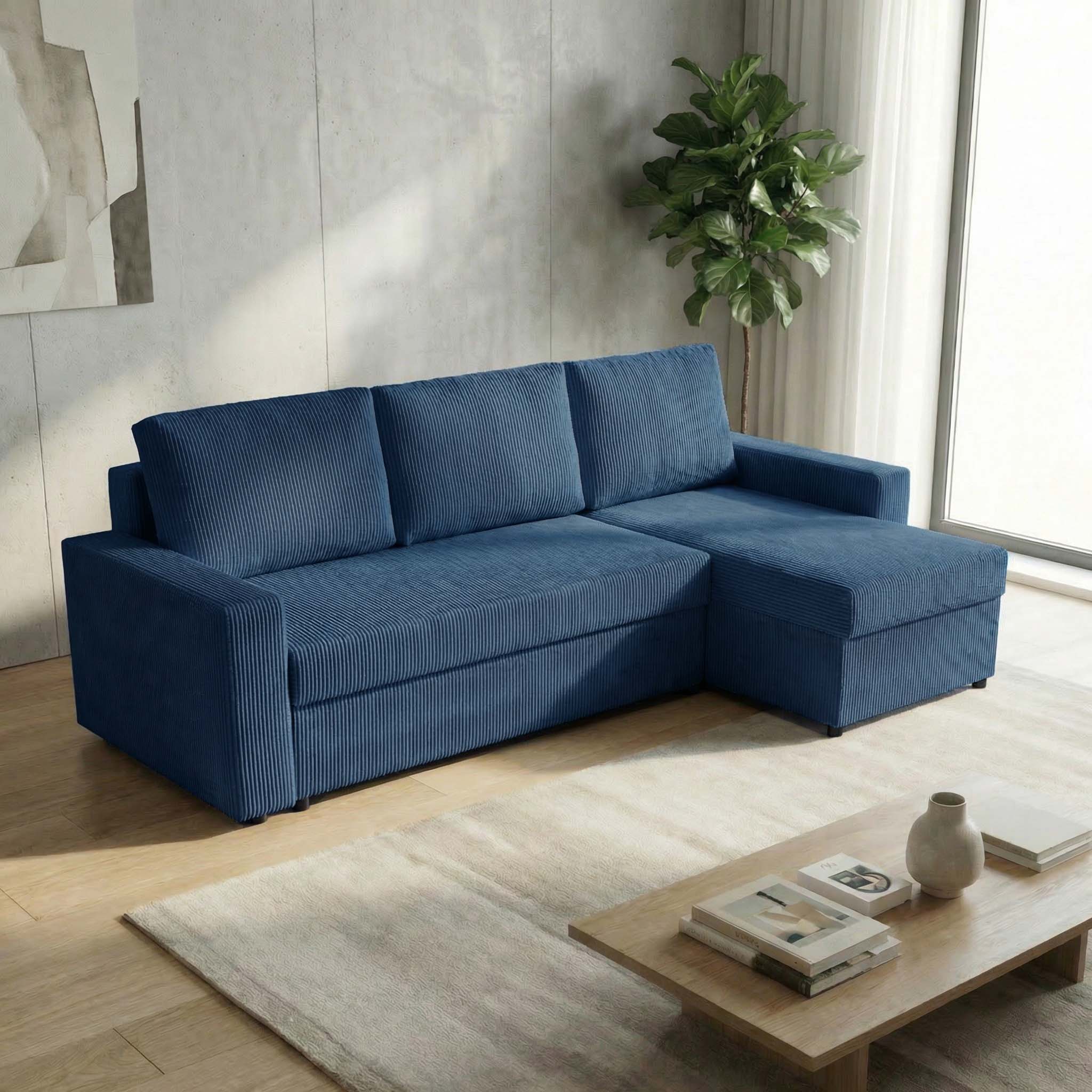 Narożnik z funkcją spania do salonu NIRVANA PLUS sztruks niebieski