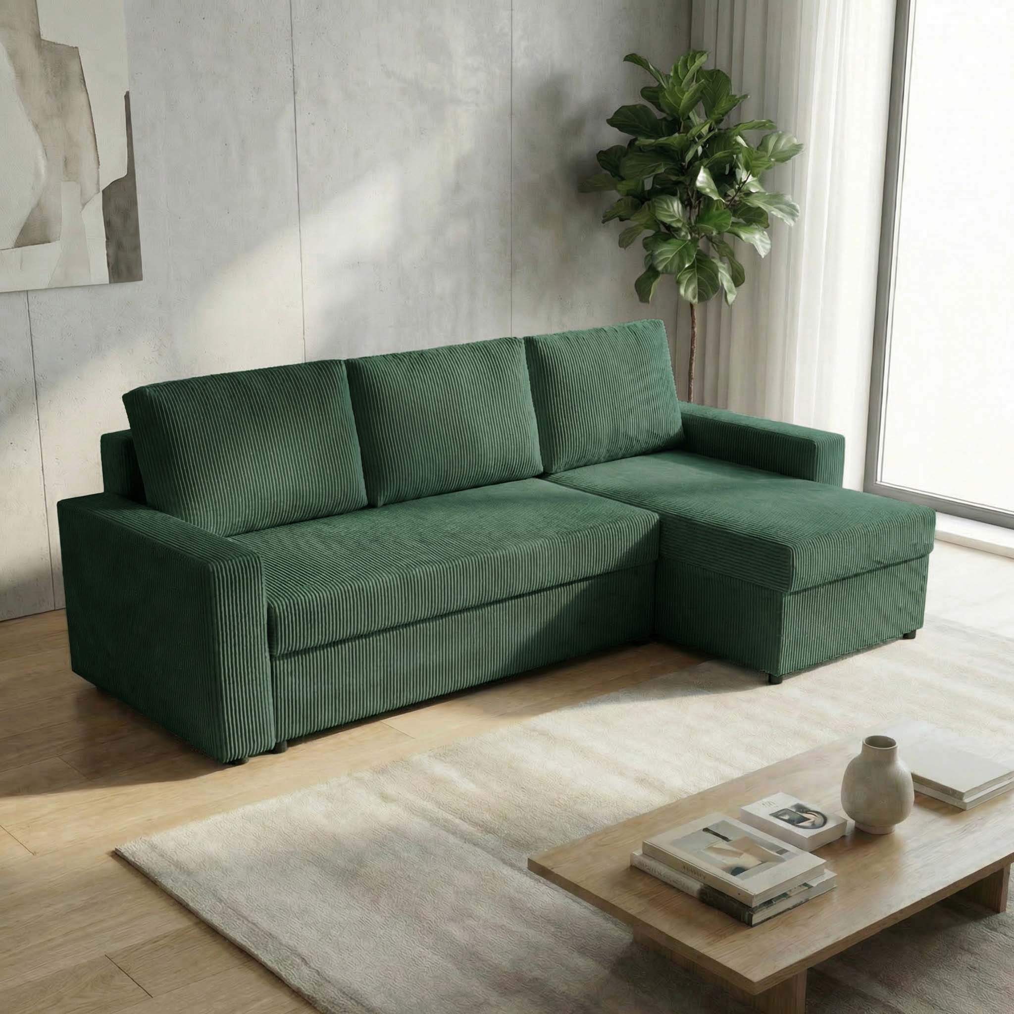 Narożnik z funkcją spania do salonu NIRVANA PLUS sztruks zielony