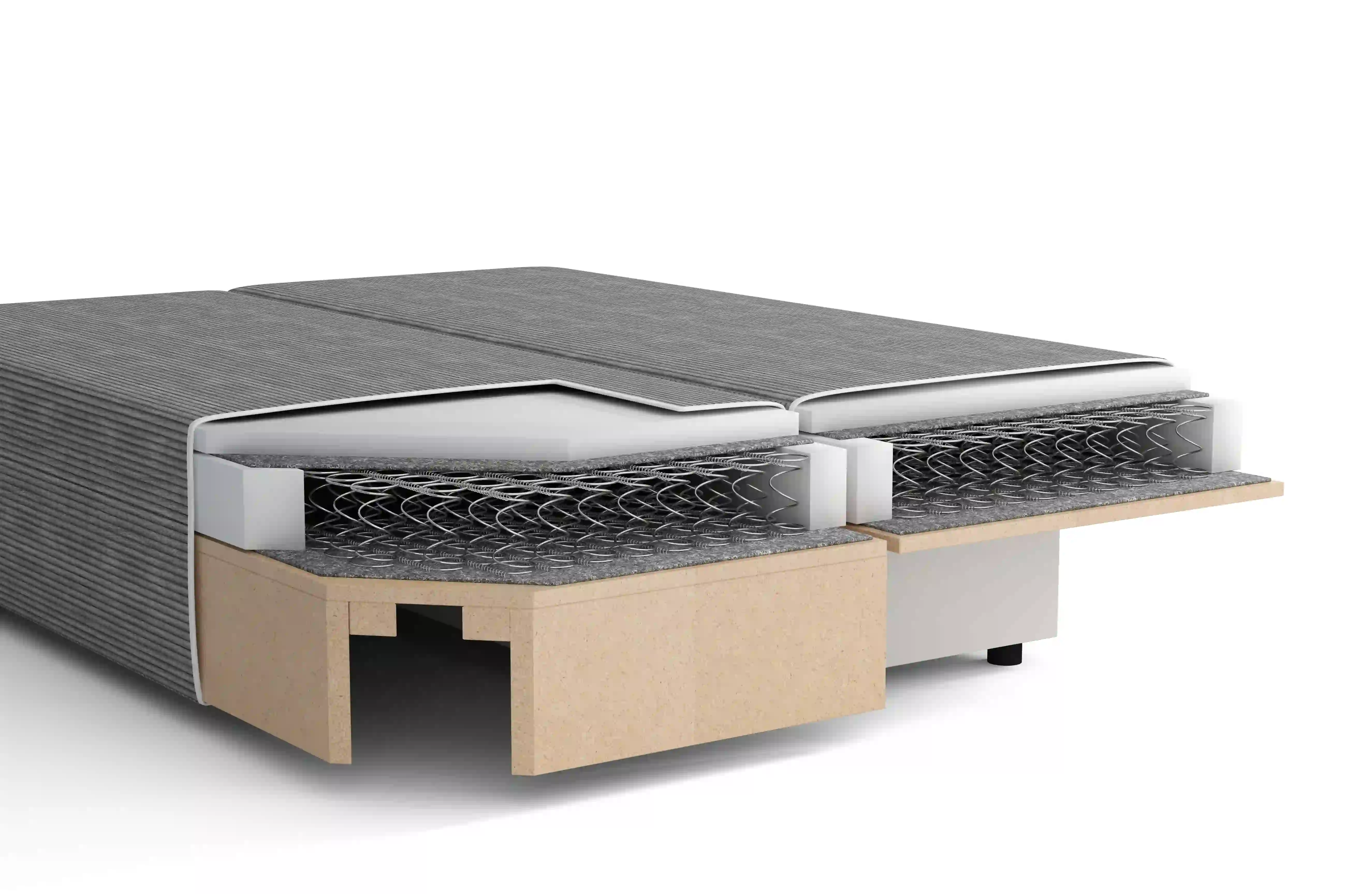 Dzięki niej w łatwy i szybki sposób przekształcisz sofę w dwuosobowe łóżko o szerokości 140 cm i długości 195cm. Cała powierzchnia spania wypełniona jest sprężynami bonell, które znacznie zwiększą twój komfort spania. Sprężyny te cechują się progresywną twardością, przez co są bardzo uniwersalne i odpowiednie zarówno dla osób o małej jak i dużej wadze. Co więcej uzyskana powierzchnia spania cechuje się tą samą grubością i wypełnieniem dzięki czemu śpisz jak na komfortowym materacu. Uzyskana po rozłożeniu powierzchnia dzielona jest w proporcji 50:50, czy po 70 cm dla każdej połowy.