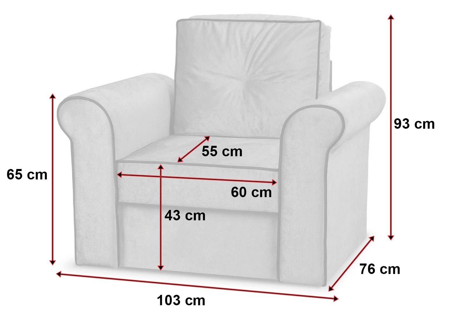 - Wysokość siedziska to 43 cm