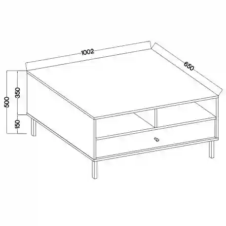Stolik kawowy, który łączy w sobie funkcjonalność i estetykę, pozwalając na uporządkowanie przestrzeni wokół sofy czy fotela. Dzięki pojemnej szufladzie i otwartym półkom, możesz łatwo przechować piloty, gazety czy drobne akcesoria, a jego elegancki design zyska uznanie w każdym nowoczesnym wnętrzu.