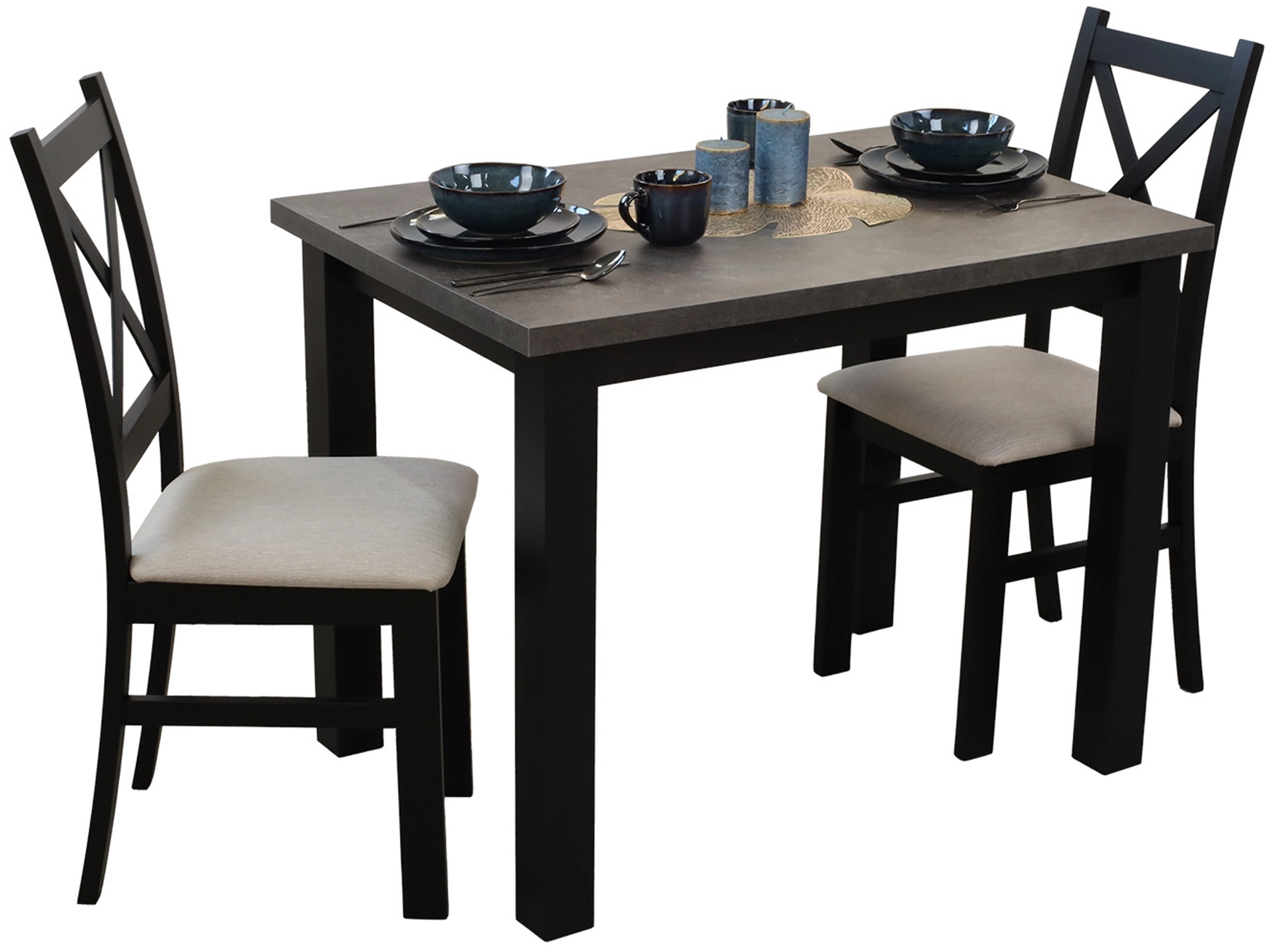 Zestaw stół 100x70 Czarny/Beton z 2 krzesłami do jadalni kuchni Czarny/Beż M004-2