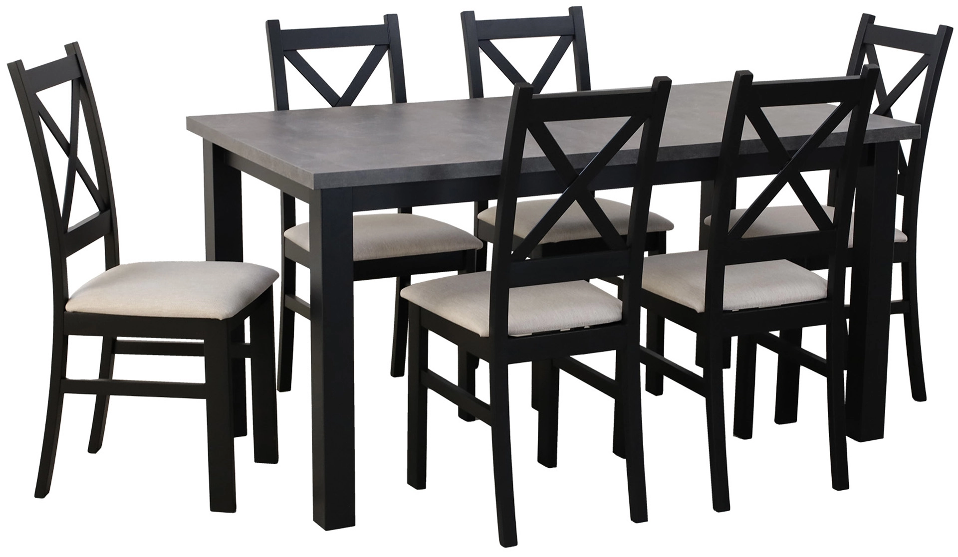 Dane techniczne Zestaw stół rozkładany 150/190x80 Czarny/Beton z 6 krzesłami do jadalni kuchni Czarny/Beż M006-6