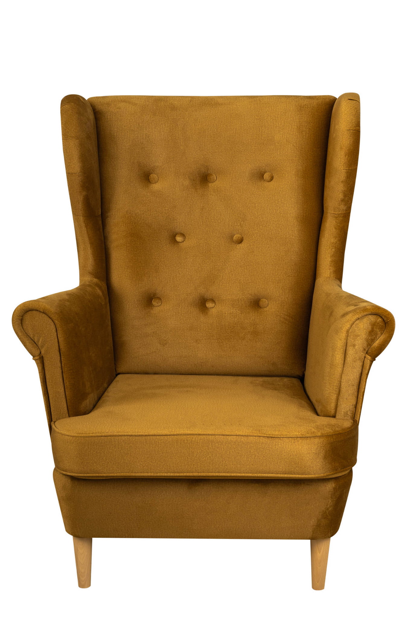 Fotel wykonany w skandynawskim stylu. Wysokie i komfortowe oparcie oraz duże, wyprofilowane podłokietniki zapewniają wyjątkowo wygodny wypoczynek. Fundament mebla stanowią cztery solidne, drewniane nóżki w naturalnym jasnym kolorze. Głębokie siedzisko i wygodne oparcie z charakterystycznymi "uszami" tzw. uszak to produkt cieszący się ostatnio bardzo dużą popularnością.